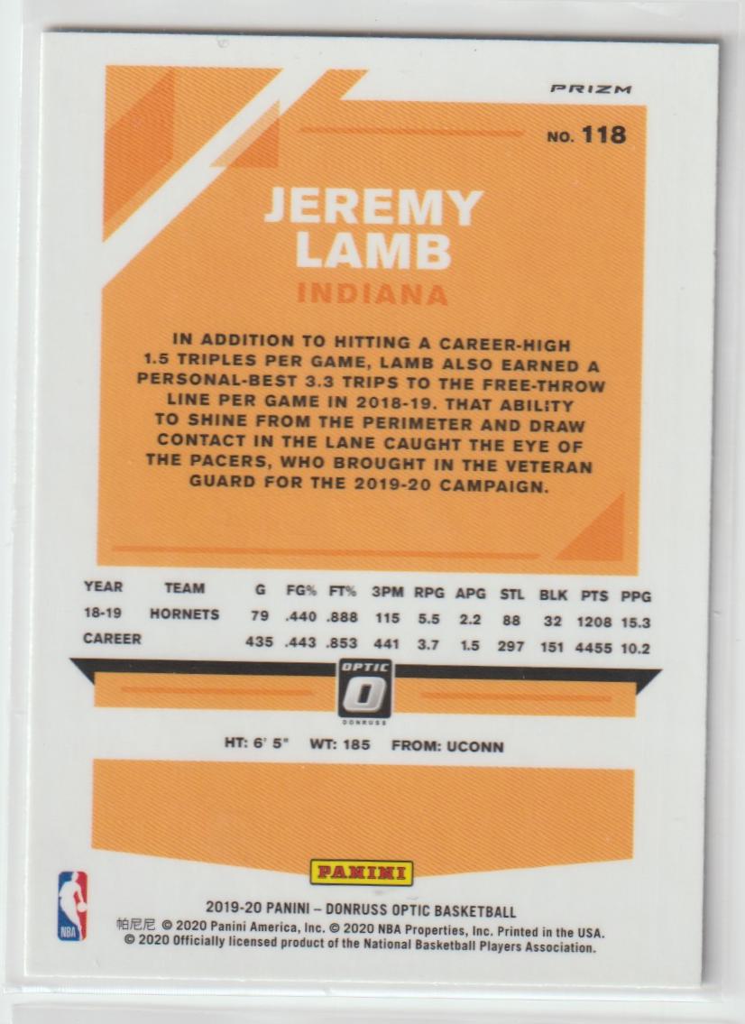 118 Jeremy Lamb - Indiana Pacers Holo 2019/20 Donruss Optic Basketball