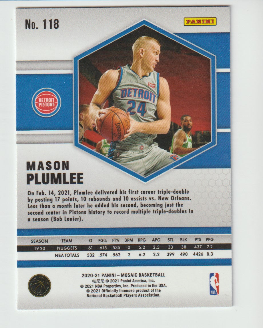 118 Mason Plumlee - Detroit Pistons 2020/21 Mosaic Basketball