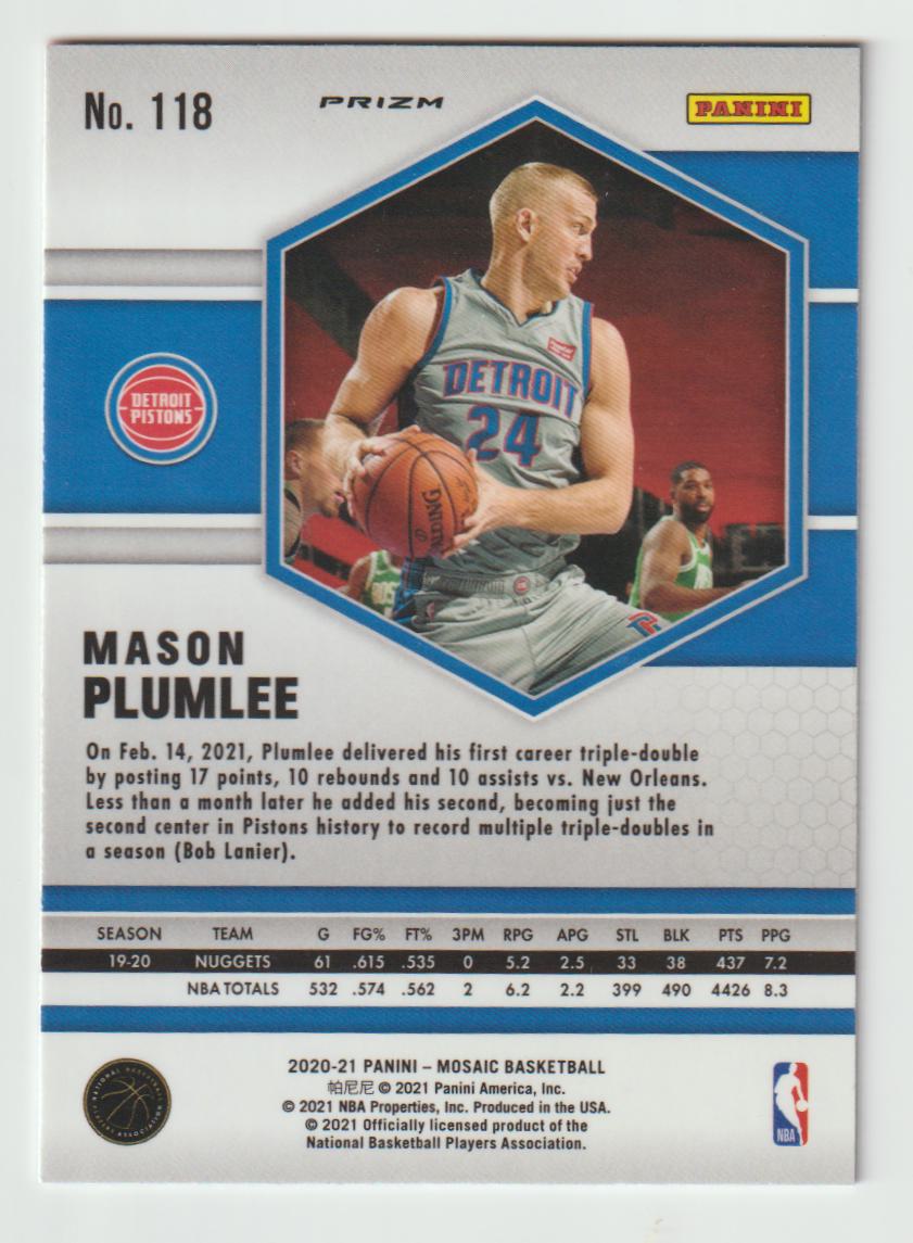 118 Mason Plumlee - Detroit Pistons Green 2020/21 Mosaic Basketball