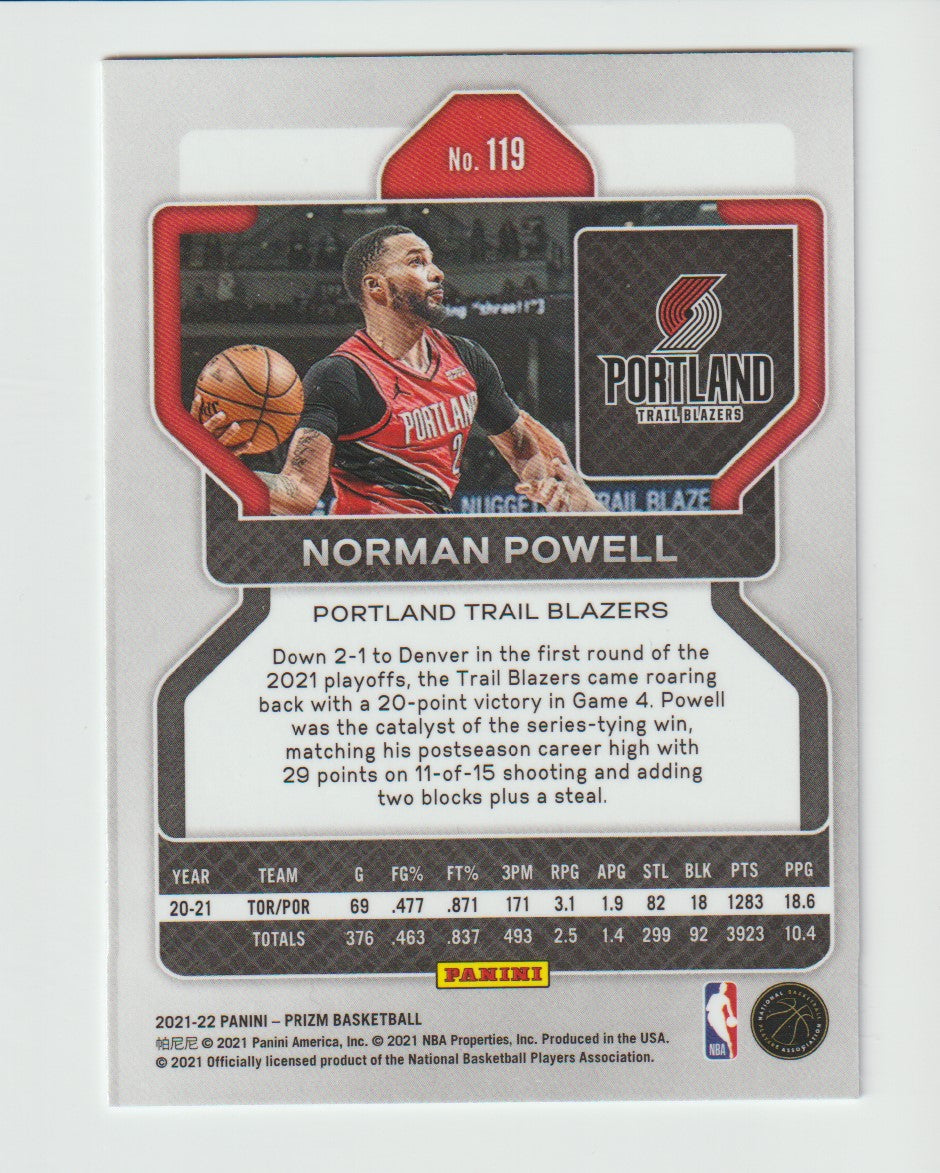 119 Norman Powell - Portland Trail Blazers 2021/22 Prizm Basketball
