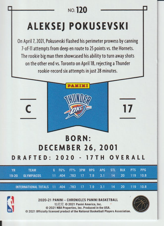 120 Aleksej Pokusevski - Oklahoma City Thunder 20/21 Chronicles Basketball