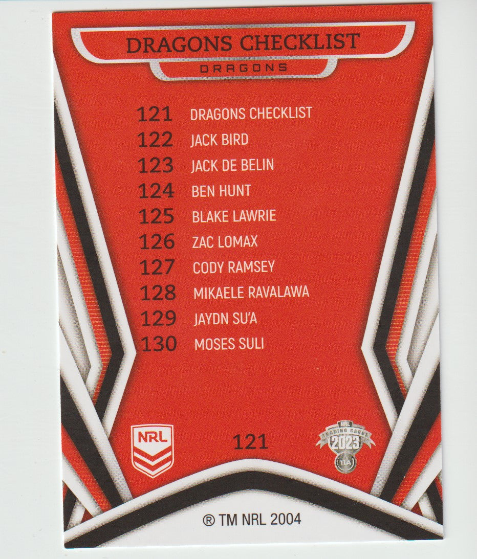 121 DRAGONS CHECKLIST 2023 NRL Traders