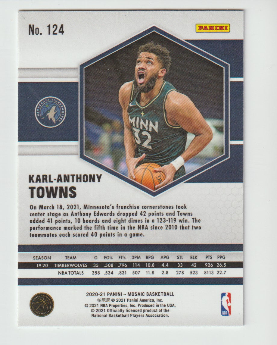 124 Karl-Anthony Towns - Minnesota Timberwolves 2020/21 Mosaic Basketball
