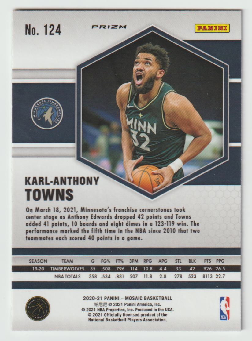 124 Karl-Anthony Towns - Minnesota Timberwolves Green 2020/21 Mosaic Basketball