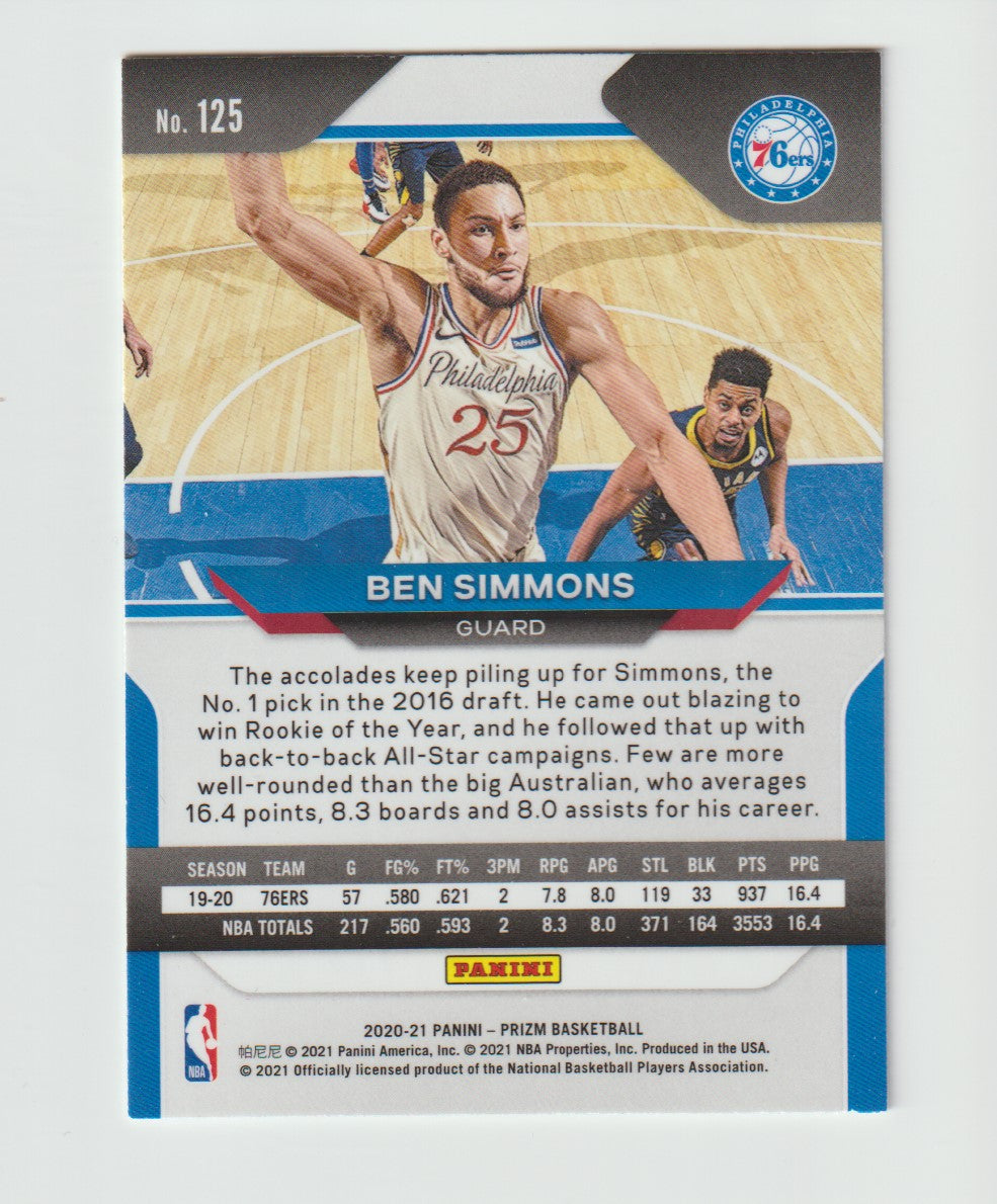 125 Ben Simmons - Philadelphia 76ers 2020/21 Prizm Basketball