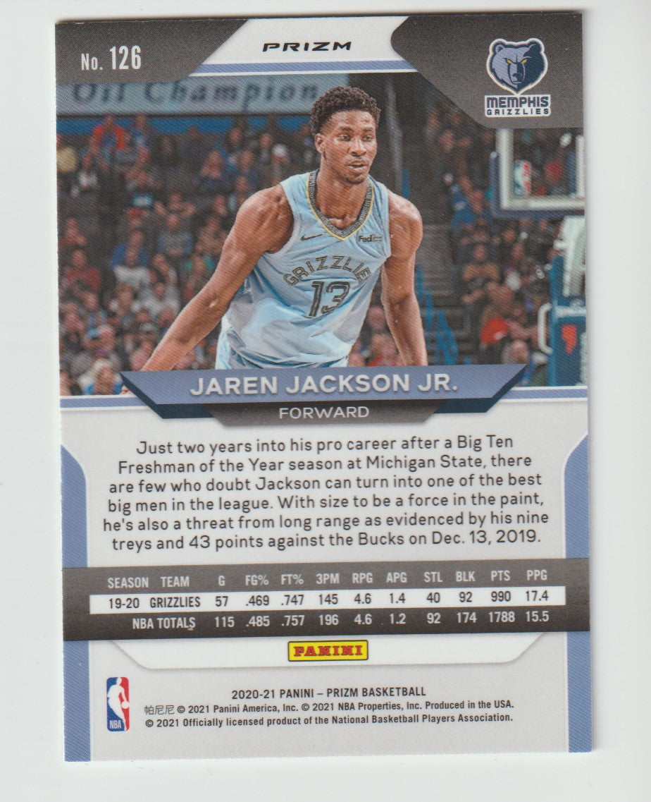 126 Jaren Jackson Jr. - Memphis Grizzlies Green Prizm 2020/21 Prizm Basketball