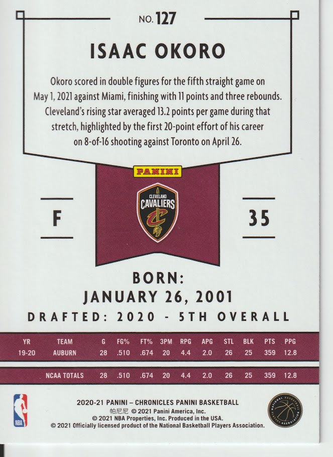 127 Isaac Okoro - Cleveland Cavaliers 20/21 Chronicles Basketball