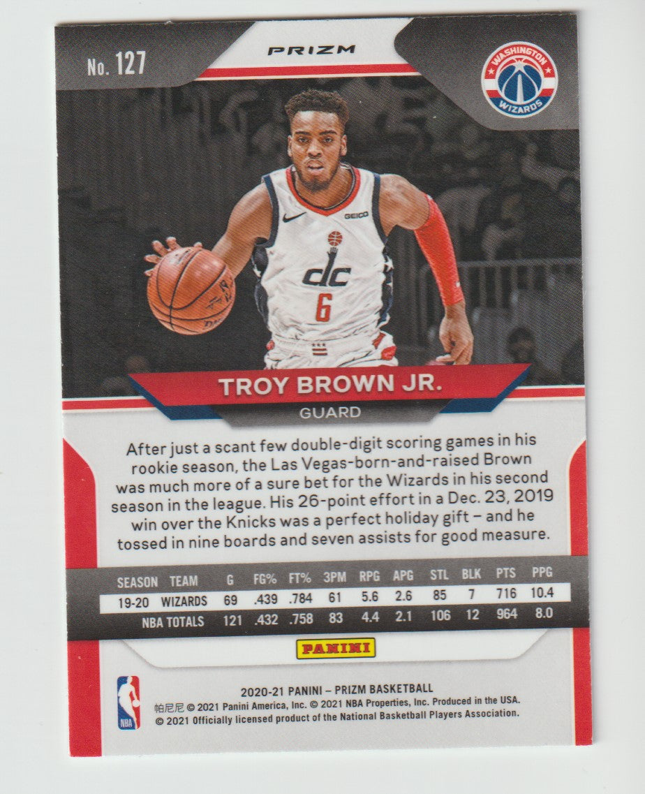 127 Troy Brown Jr. - Washington Wizards Green Prizm 2020/21 Prizm Basketball
