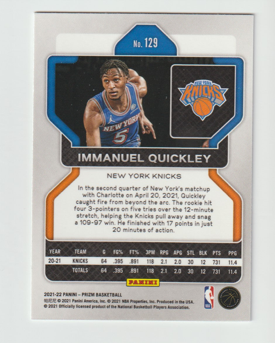 129 Immanuel Quickley - New York Knicks 2021/22 Prizm Basketball