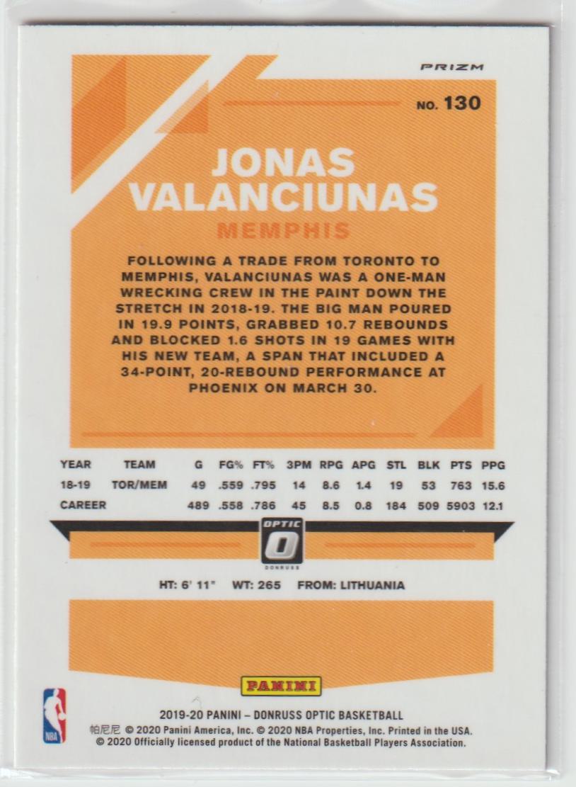 130 Jonas Valanciunas - Memphis Grizzlies Hyper Pink Prizm 2019/20 Donruss Optic Basketball