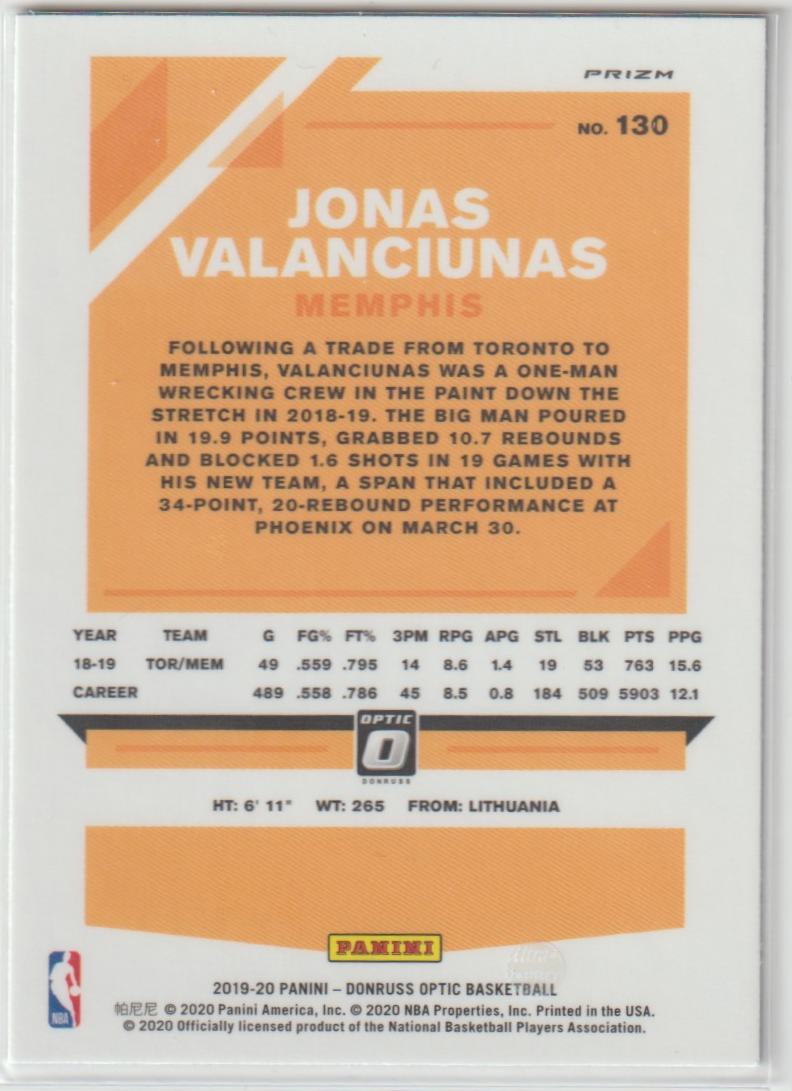 130 Jonas Valanciunas - Memphis Grizzlies Purple 2019/20 Donruss Optic Basketball