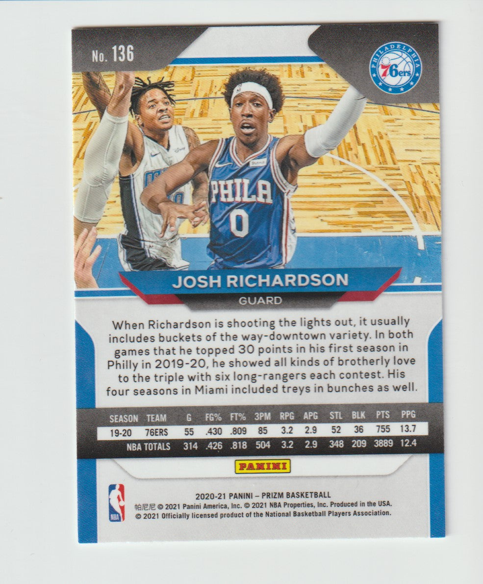 136 Josh Richardson - Philadelphia 76ers 2020/21 Prizm Basketball