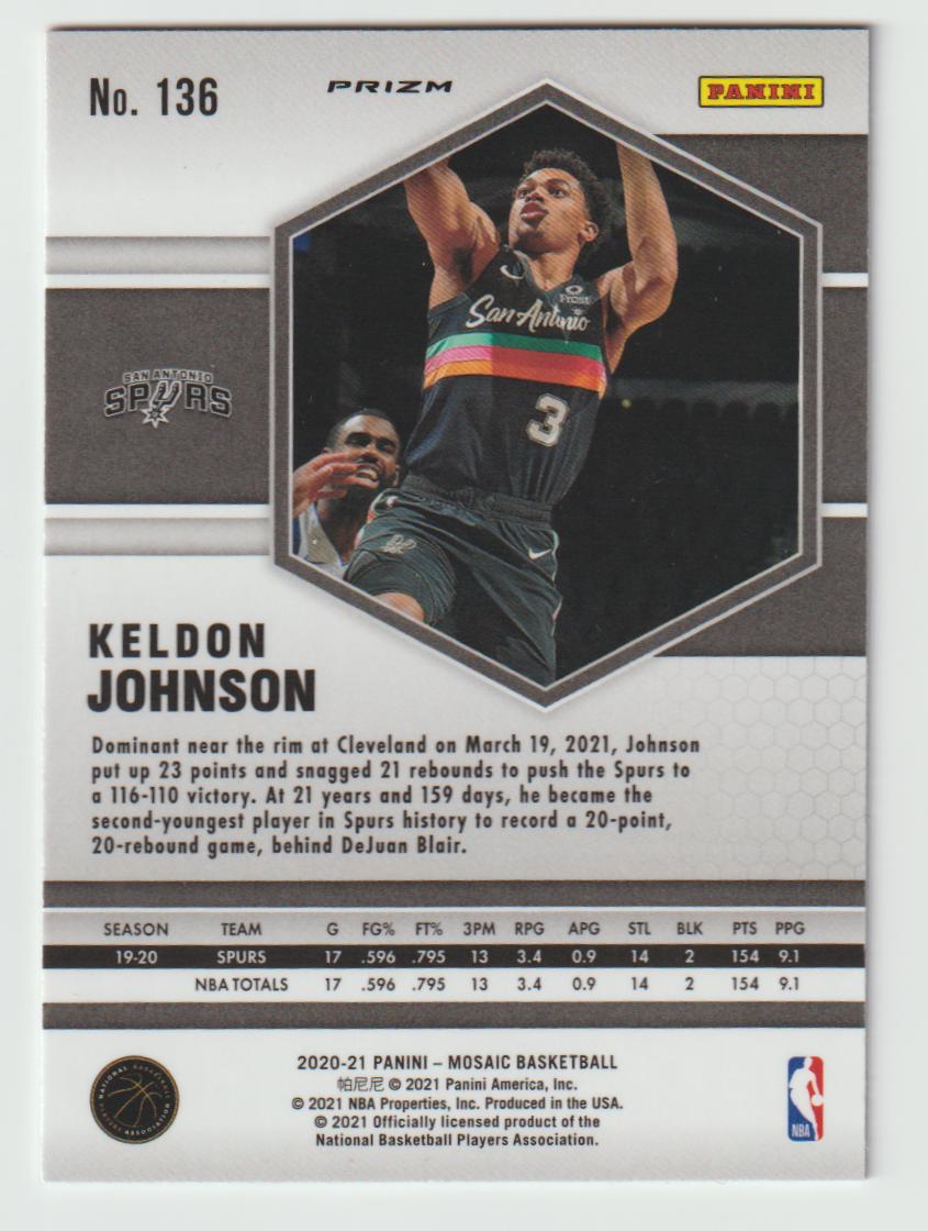 136 Keldon Johnson - San Antonio Spurs Camo Pink 2020/21 Mosaic Basketball