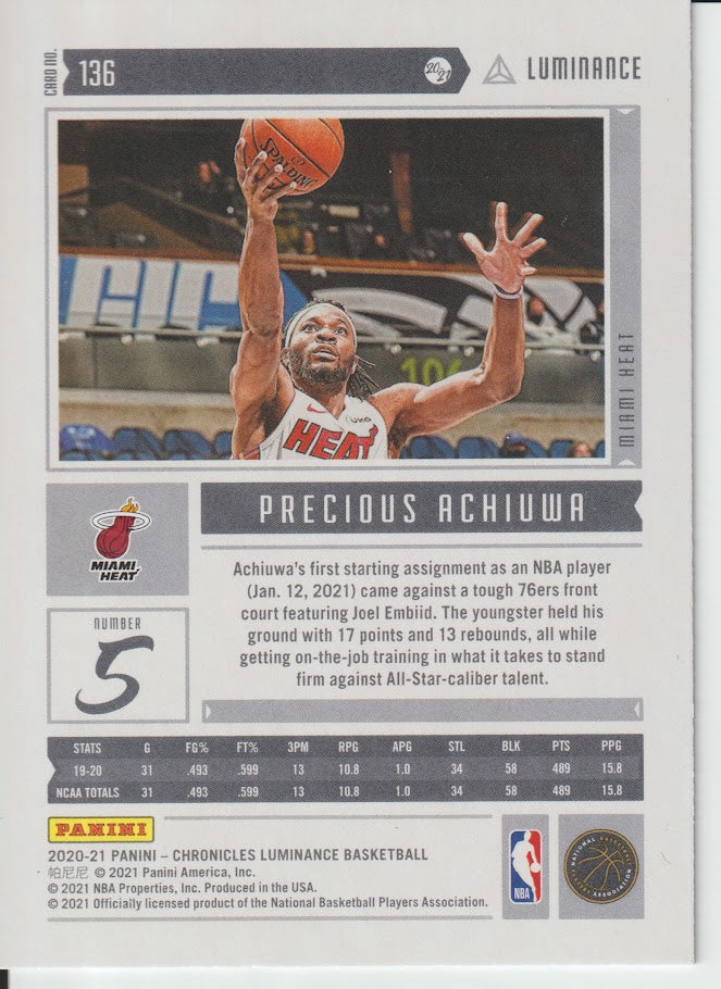 136 Precious Achiuwa - Miami Heat 20/21 Chronicles Basketball