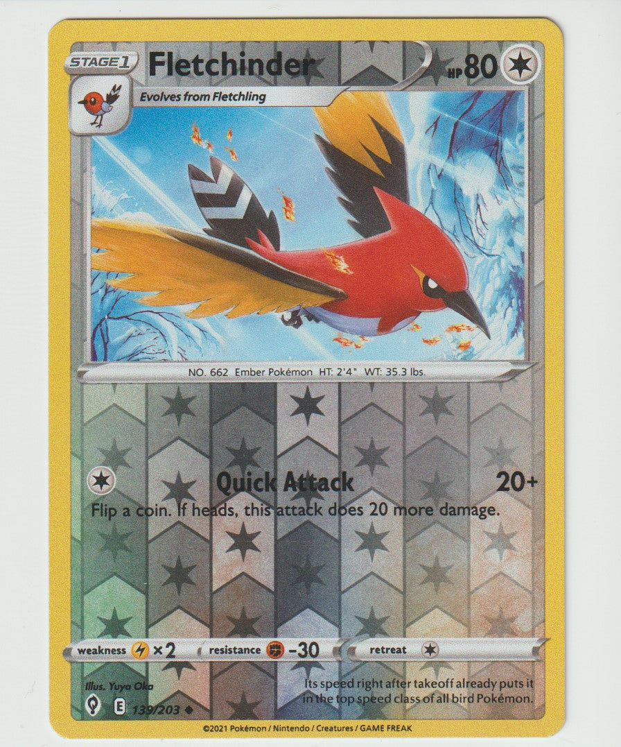 139/203 Fletchinder Uncommon Reverse Holo 2021 Sword & Shield Evolving Skies