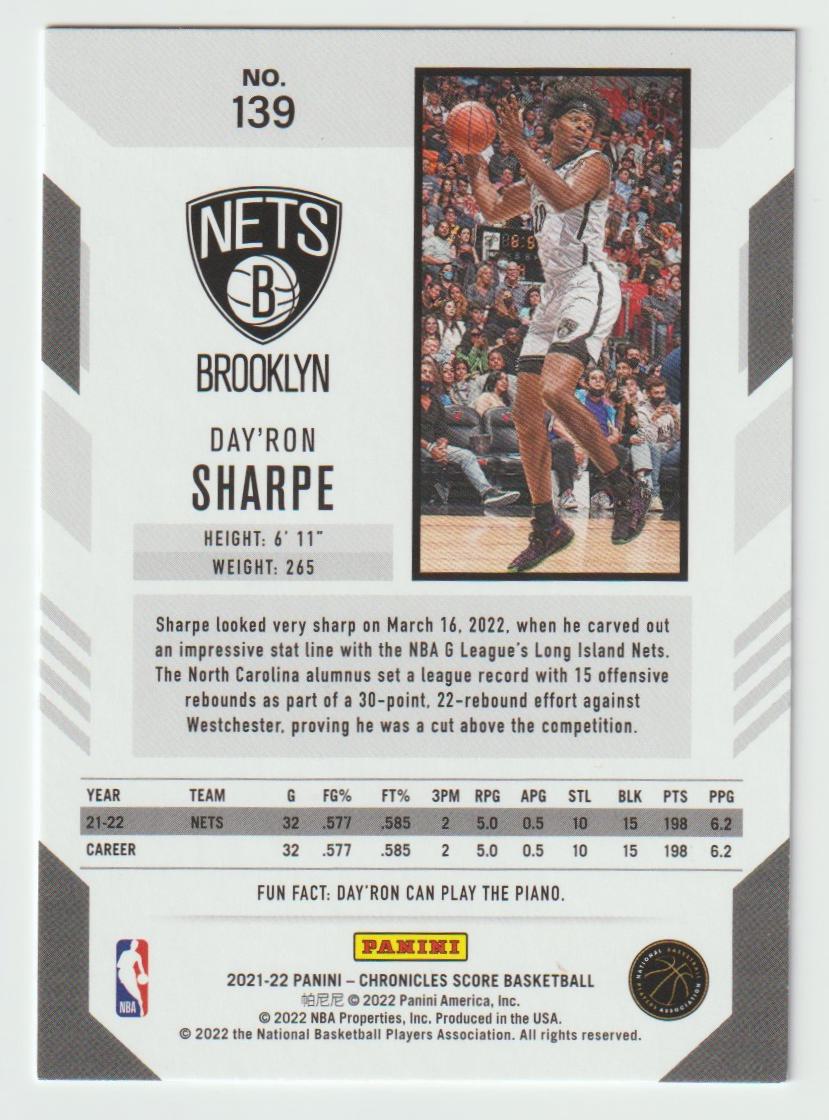 139 Day'Ron Sharpe - Brooklyn Nets 2021/22 Chronicles Basketball