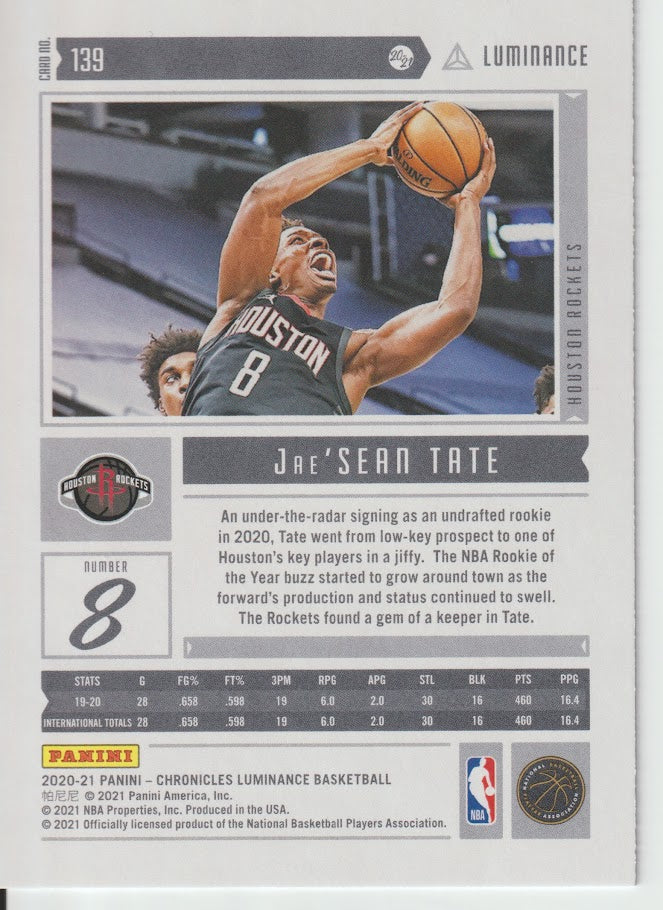 139 Jae'Sean Tate - Houston Rockets 20/21 Chronicles Basketball