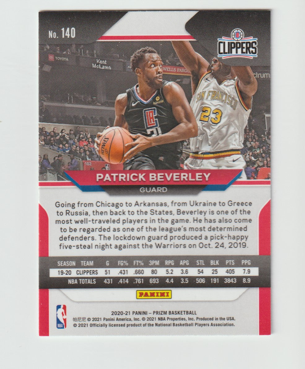 140 Patrick Beverley - Los Angeles Clippers 2020/21 Prizm Basketball