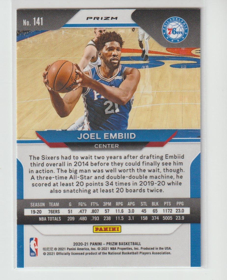 141 Joel Embiid - Philadelphia 76ers Green Prizm 2020/21 Prizm Basketball