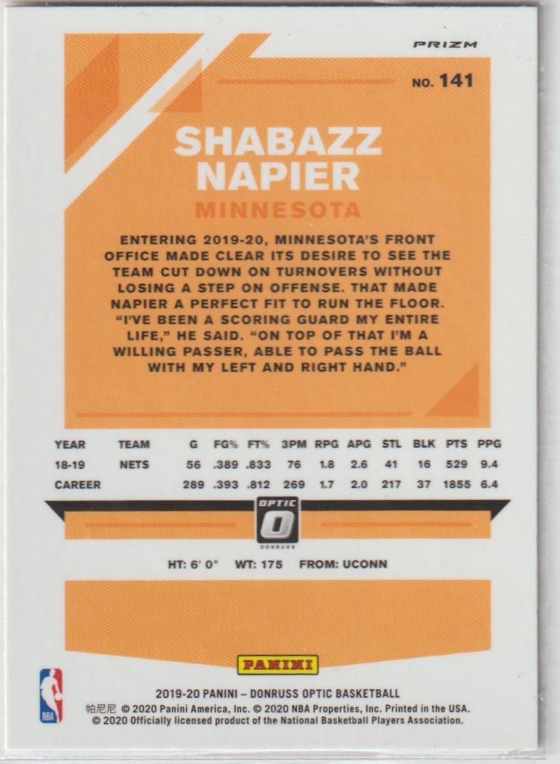 141 Shabazz Napier - Minnesota Timberwolves Red Wave 2019/20 Donruss Optic Basketball