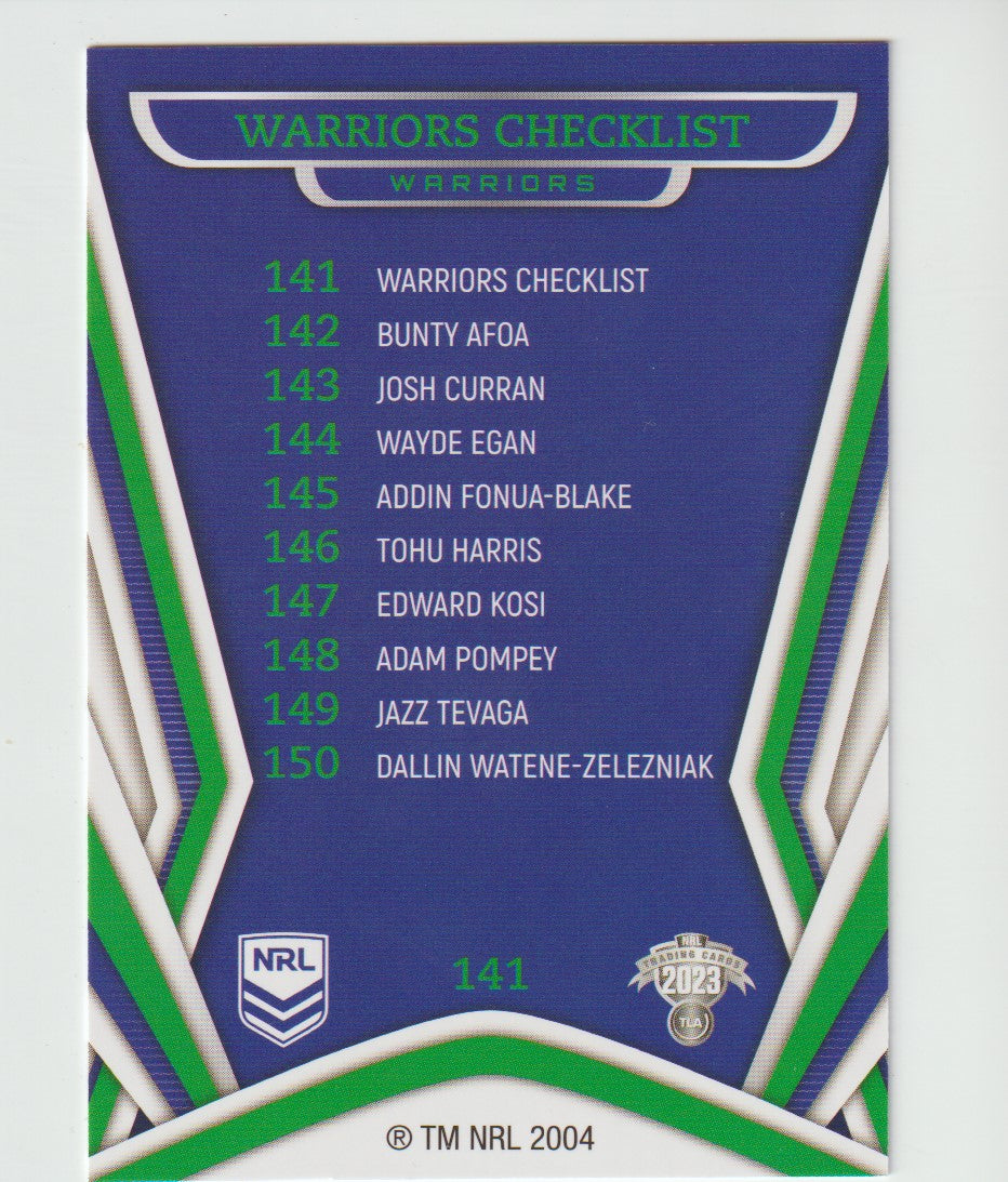 141 WARRIORS CHECKLIST 2023 NRL Traders