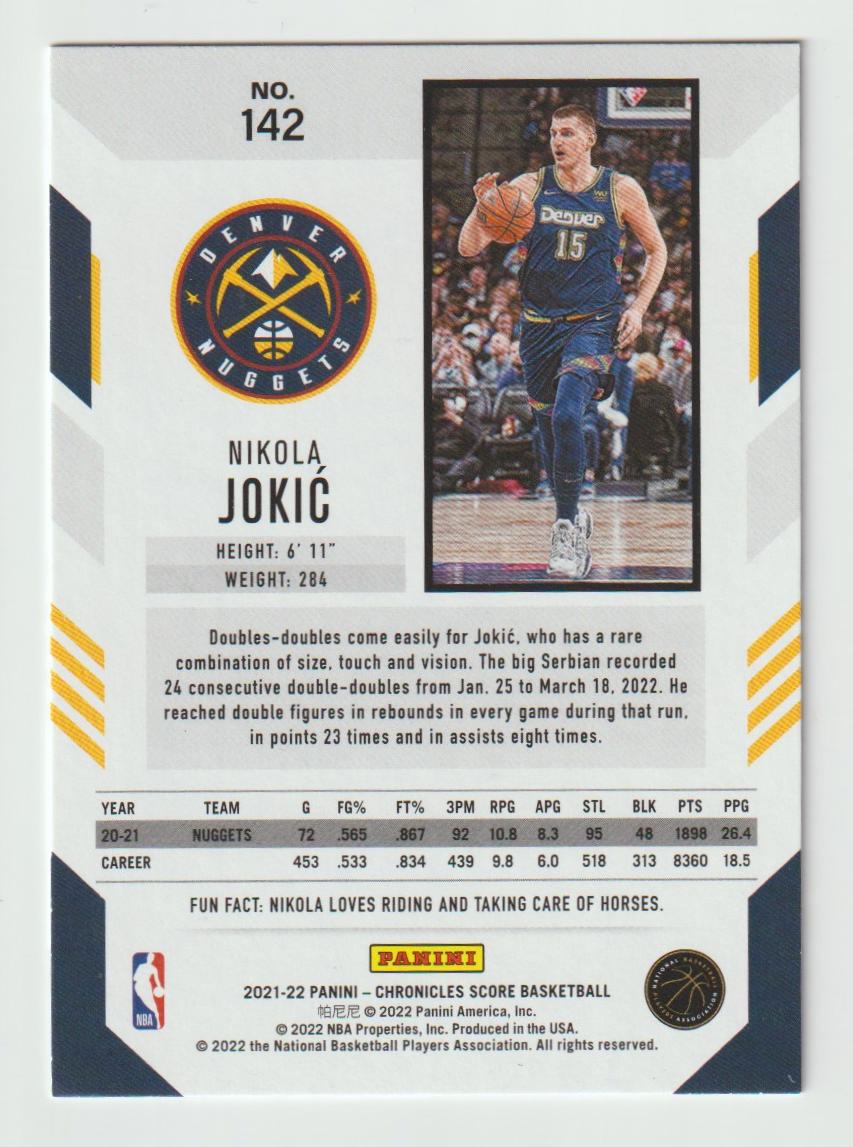 142 Nikola Jokic - Denver Nuggets 2021/22 Chronicles Basketball