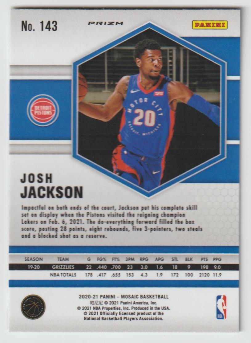 143 Josh Jackson - Detroit Pistons Green 2020/21 Mosaic Basketball