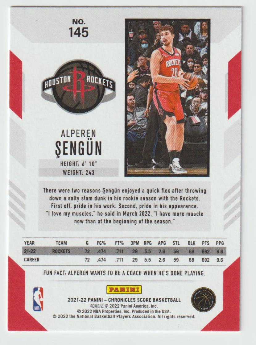 145 Alperen Sengun - Houston Rockets 2021/22 Chronicles Basketball
