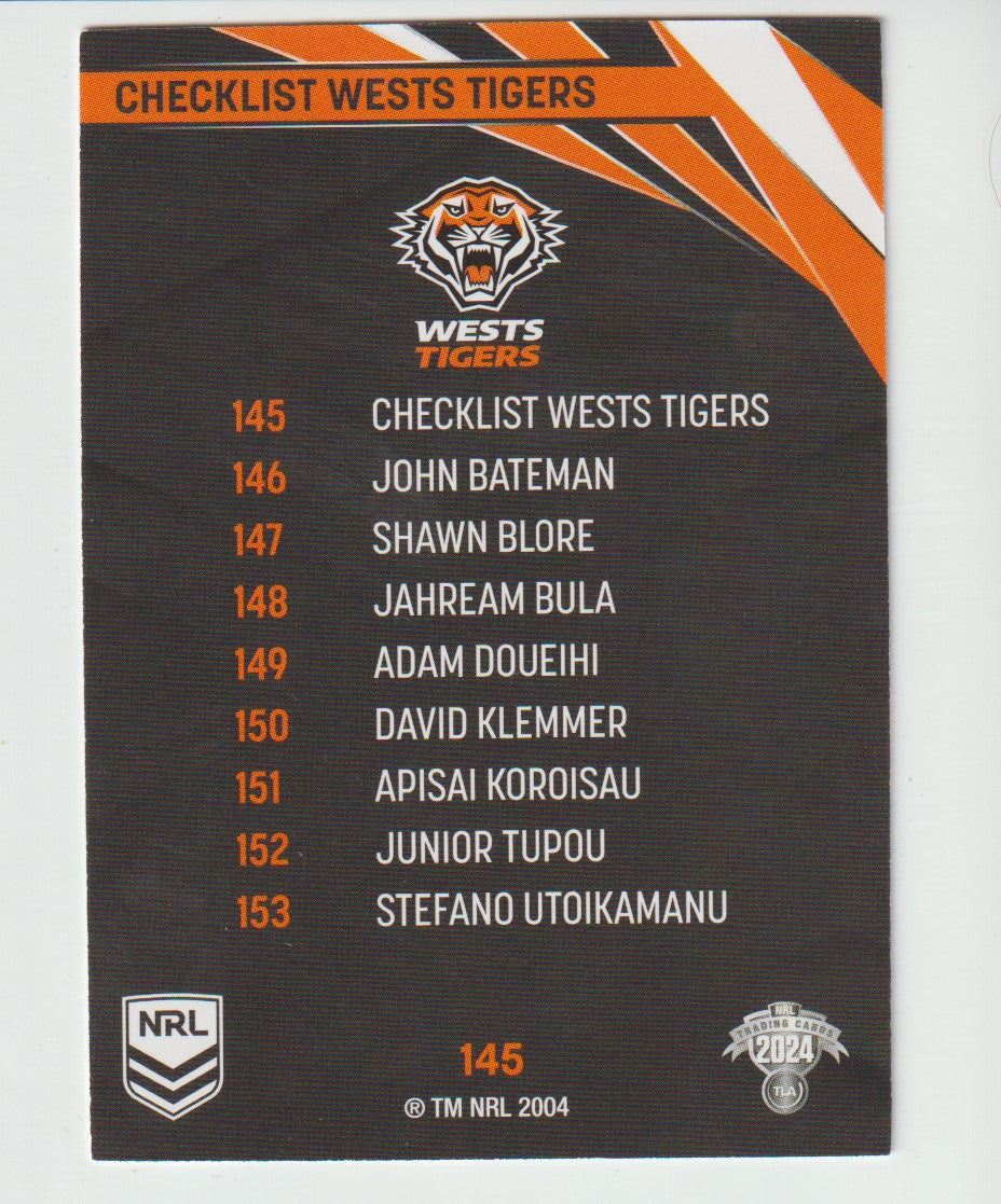 145 WESTS TIGERS CHECKLIST 2024 NRL Traders