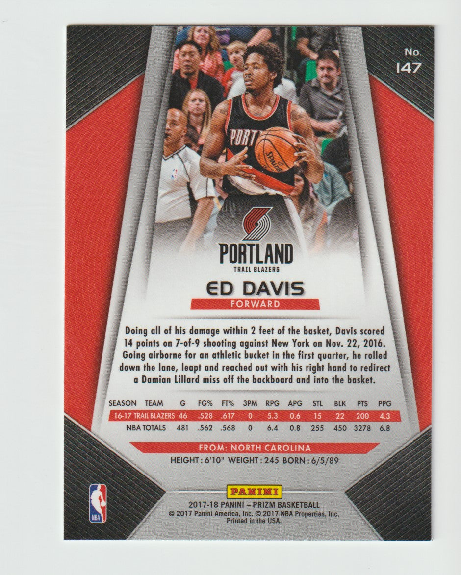 147 Ed Davis - Portland Trail Blazers 2017/18 Prizm Basketball