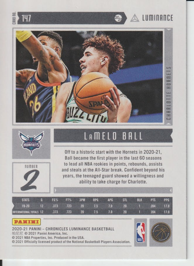147 LaMelo Ball - Charlotte Hornets 20/21 Chronicles Basketball