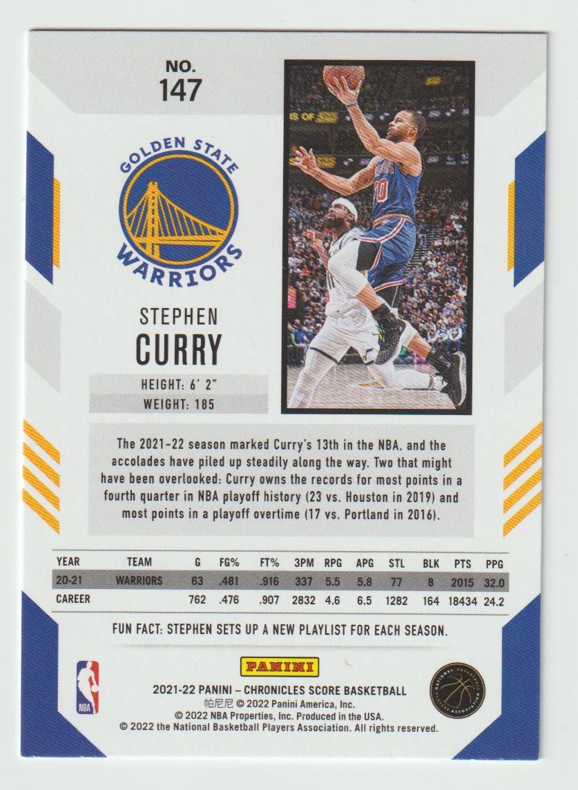 147 Stephen Curry - Golden State Warriors 2021/22 Chronicles Basketball