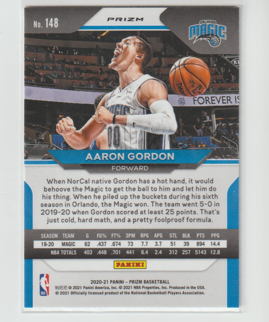 148 Aaron Gordon - Orlando Magic Silver Prizm 2020/21 Prizm Basketball
