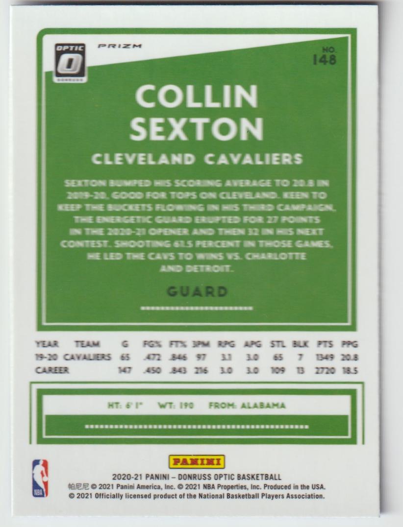 148 Collin Sexton - Cleveland Cavaliers Blue Velocity 2020/21 Donruss Optic Basketball
