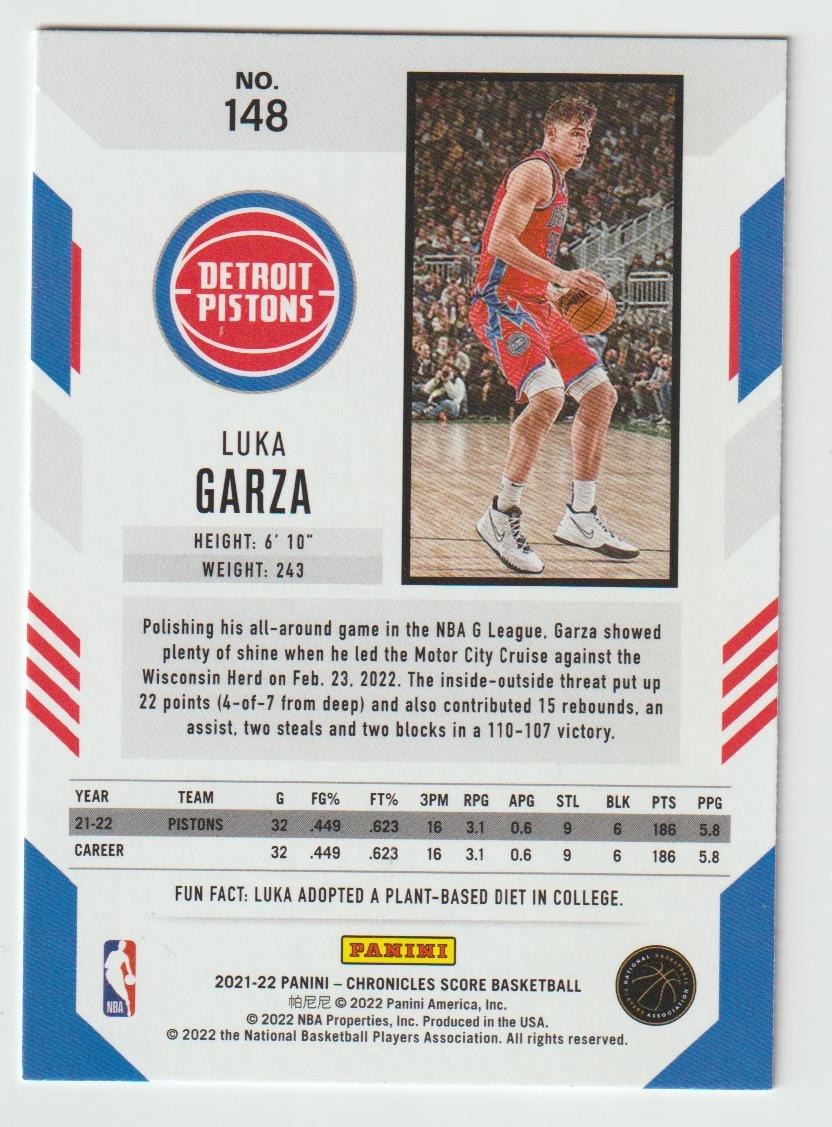 148 Luka Garza - Detroit Pistons 2021/22 Chronicles Basketball