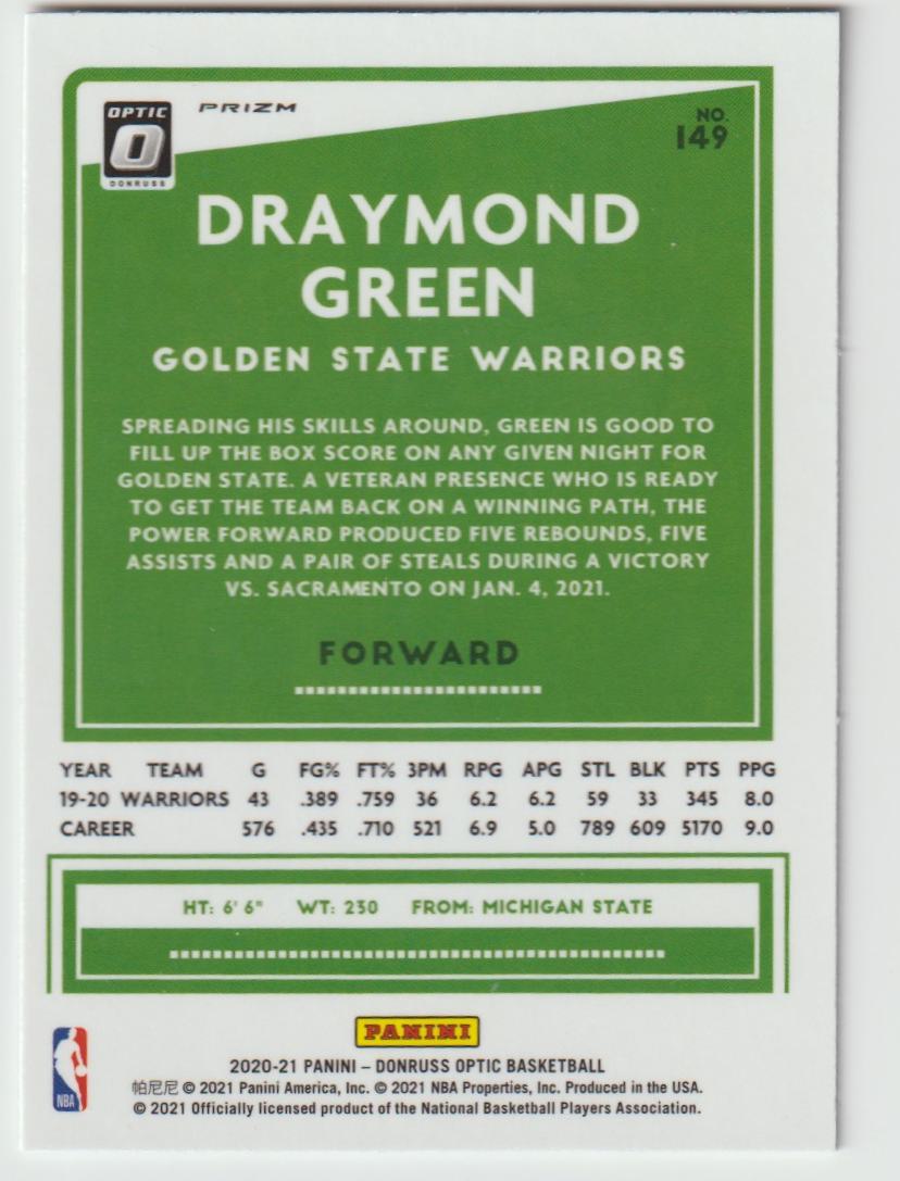 149 Draymond Green - Golden State Warriors Holo 2020/21 Donruss Optic Basketball