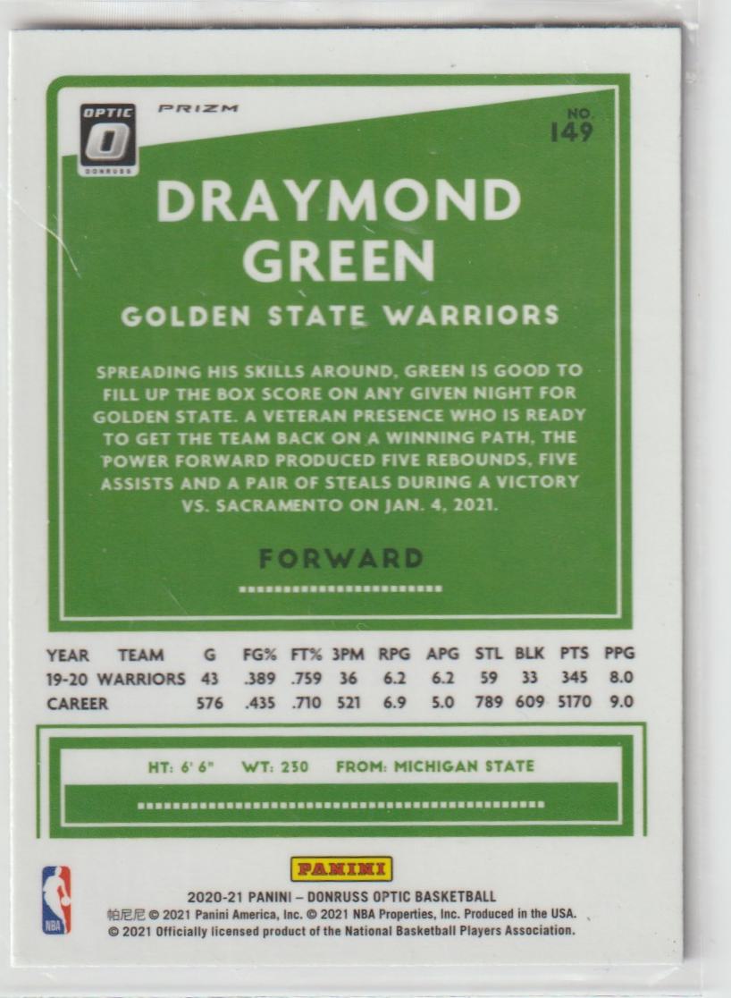 149 Draymond Green - Golden State Warriors Purple 2020/21 Donruss Optic Basketball