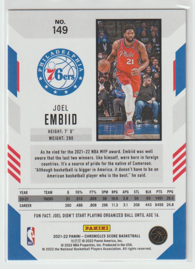 149 Joel Embiid - Philadelphia 76ers 2021/22 Chronicles Basketball