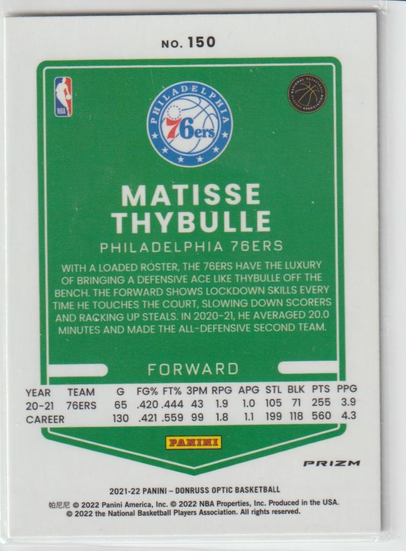 150 Matisse Thybulle - Philadelphia 76ers Holo 2021/22 Donruss Optic Basketball