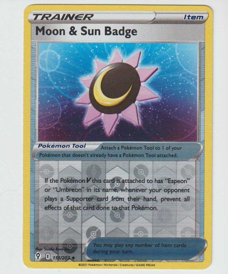151/203 Moon and Sun Badge Uncommon Reverse Holo 2021 Sword & Shield Evolving Skies