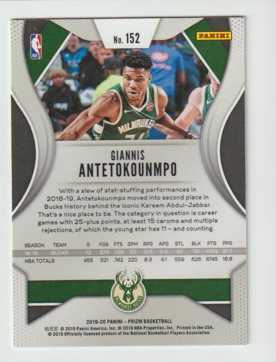 152 Giannis Antetokounmpo - Milwaukee Bucks 2019/20 Prizm Basketball