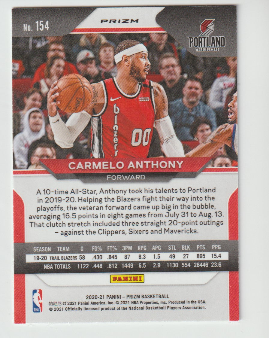 154 Carmelo Anthony - Portland Trail Blazers Red White Blue Prizm 2020/21 Prizm Basketball