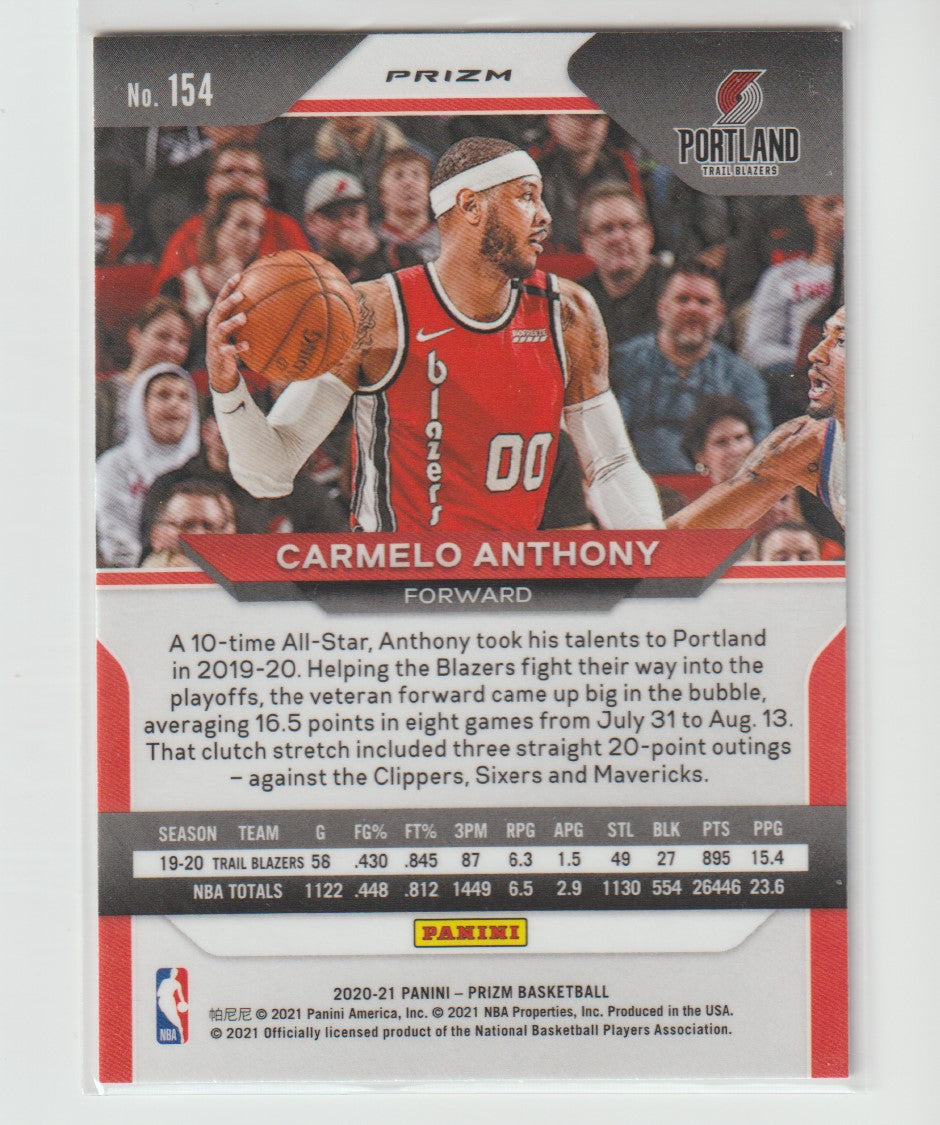 154 Carmelo Anthony - Portland Trail Blazers Silver Prizm 2020/21 Prizm Basketball
