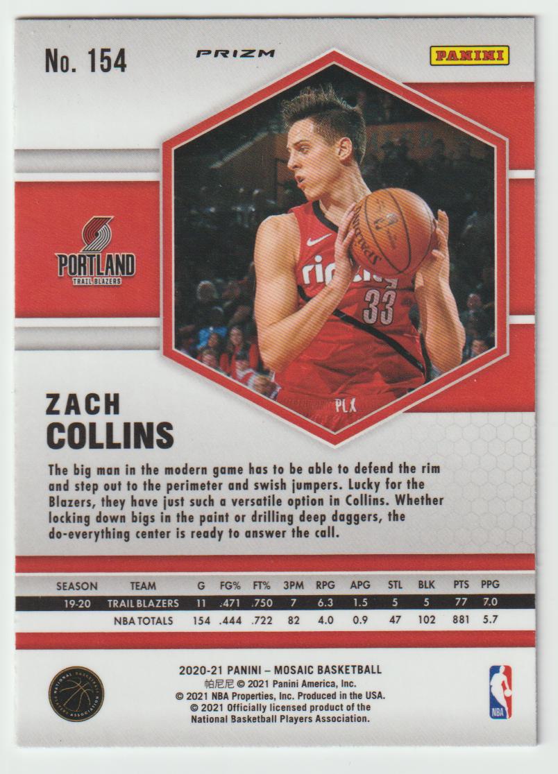 154 Zach Collins - Portland Trail Blazers Green 2020/21 Mosaic Basketball