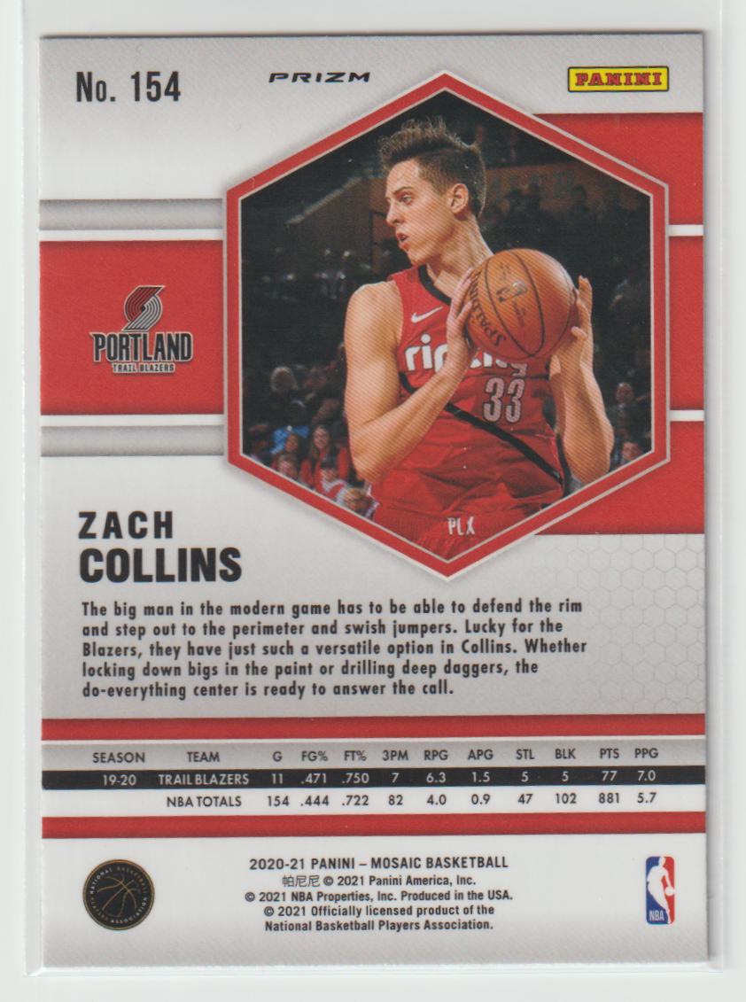154 Zach Collins - Portland Trail Blazers Silver 2020/21 Mosaic Basketball