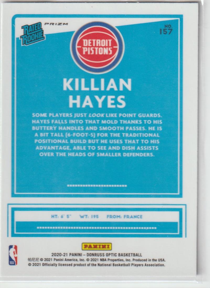 157 Killian Hayes - Detroit Pistons Purple 2020/21 Donruss Optic Basketball