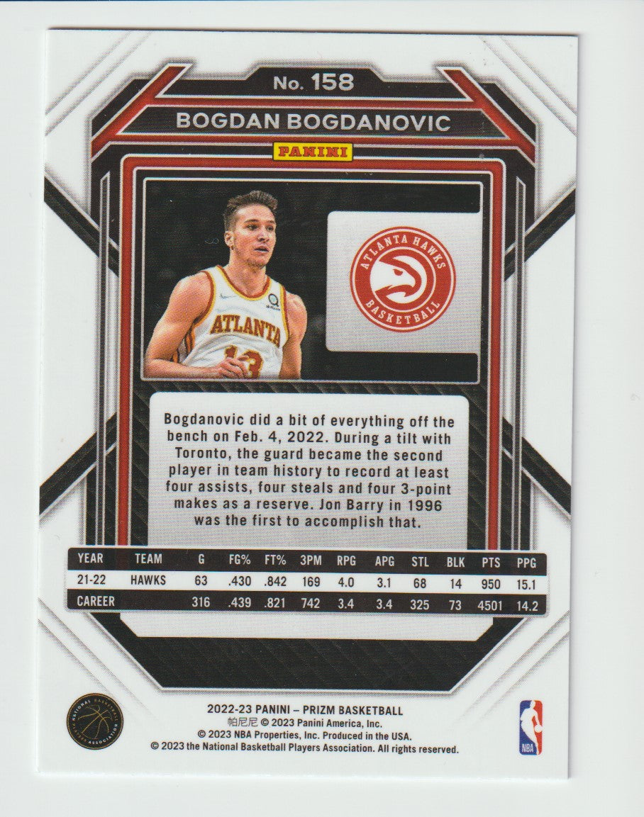 158 Bogdan Bogdanovic - Atlanta Hawks 2022/23 Prizm Basketball