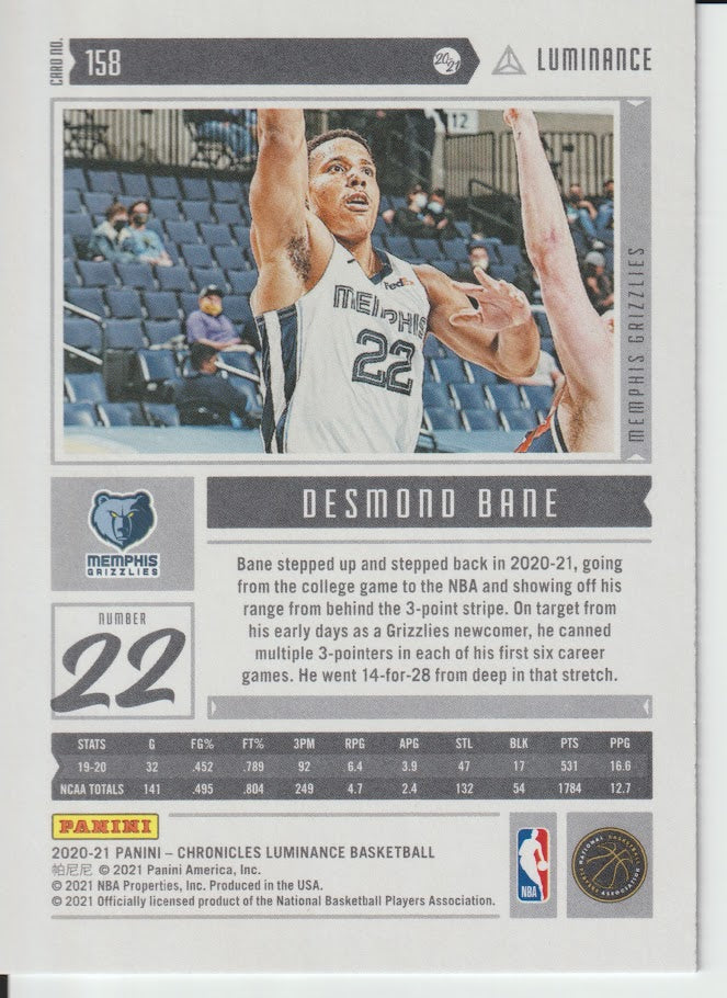 158 Desmond Bane - Memphis Grizzlies 20/21 Chronicles Basketball