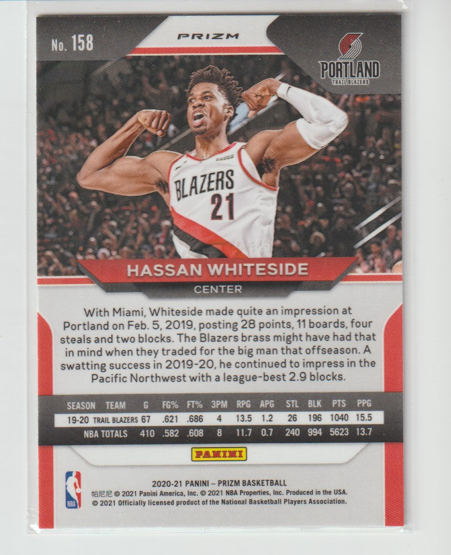 158 Hassan Whiteside - Portland Trail Blazers Green Prizm 2020/21 Prizm Basketball