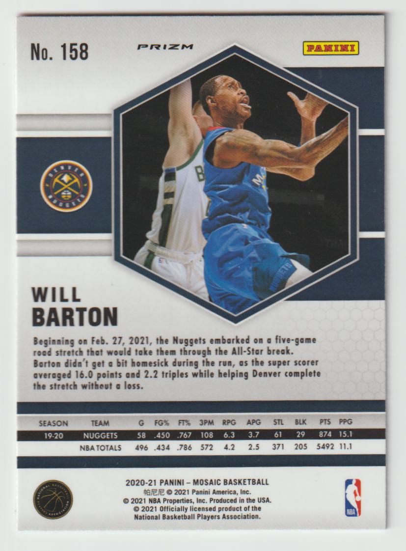 158 Will Barton - Denver Nuggets Camo Pink 2020/21 Mosaic Basketball